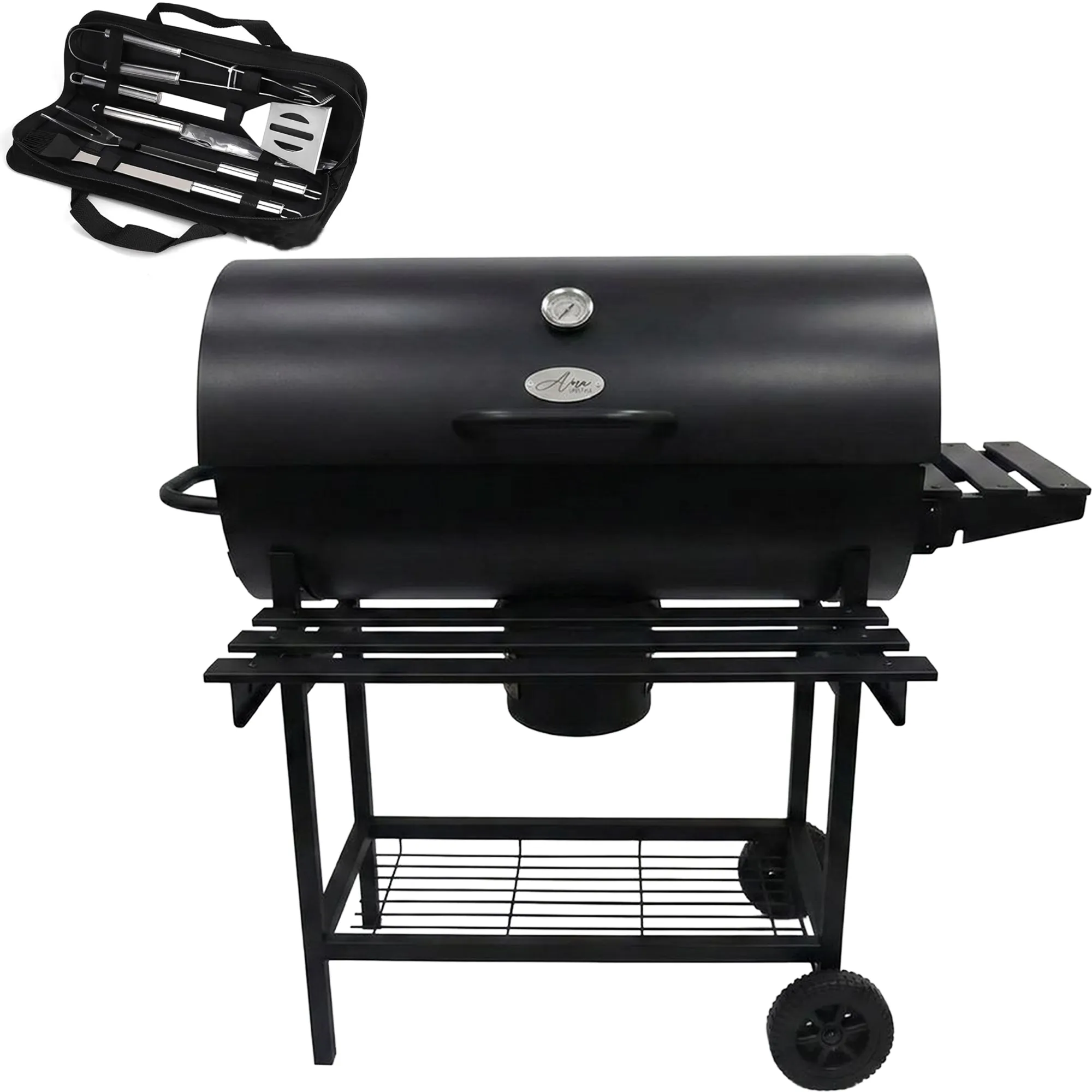 Verpakkingsinhoud: Alora Houtskool Barbecue, spatelset in draagtas.