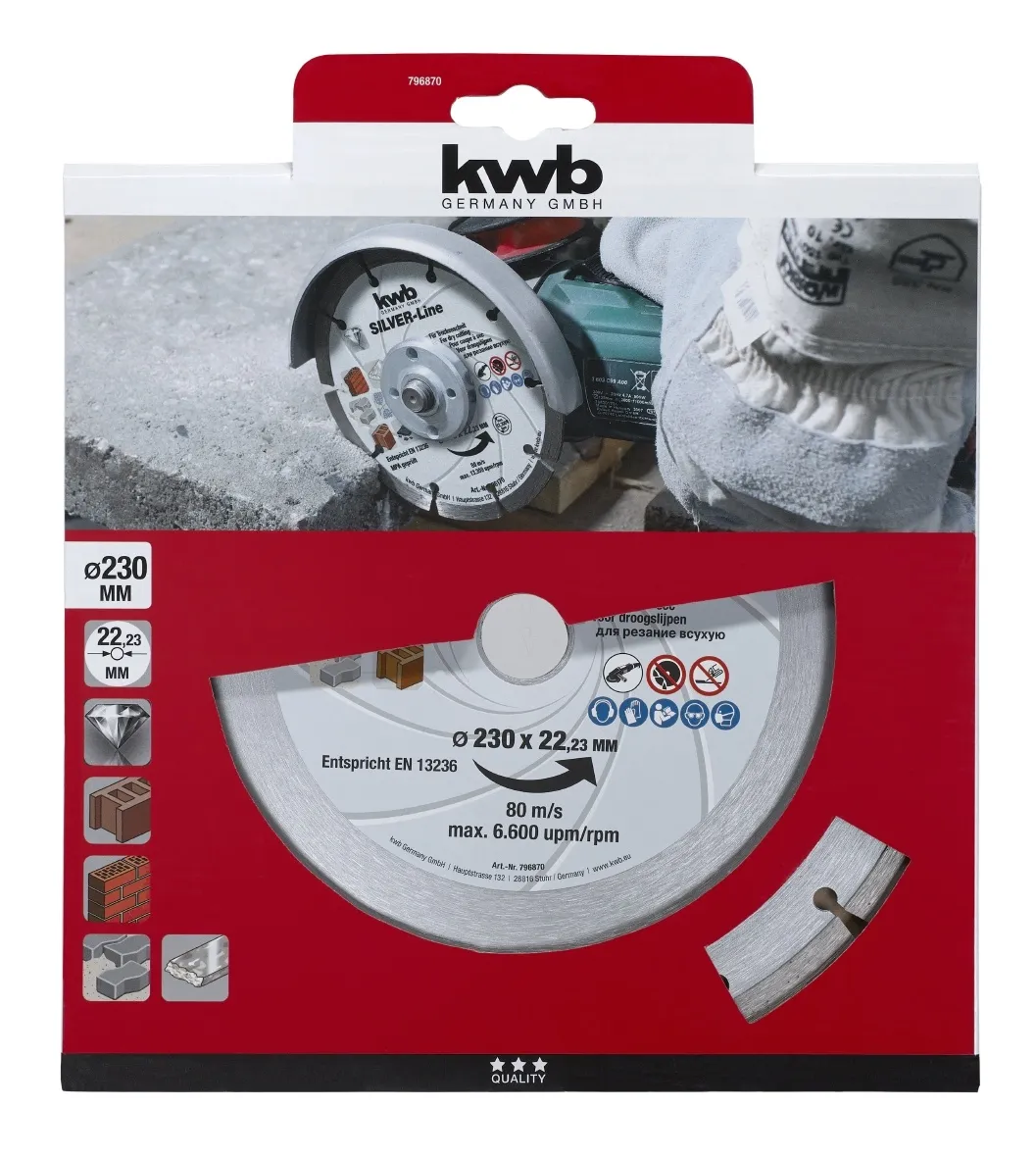 De diamant doorslijpschijf 230 mm met gesegmenteerde rand is een krachtige en duurzame slijpschijf voor het efficiënt doorzagen van harde bouwmaterialen. Dankzij de diamant bestrooide segmenten en een segmenthoogte van 7 mm levert deze schijf hoge snijsnelheid en langdurige prestaties bij beton, metselwerk, klinkers en holle blokken. Ideaal voor intensieve renovatie-, bouw- en tuinaanlegprojecten.