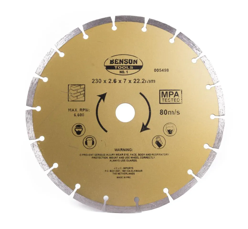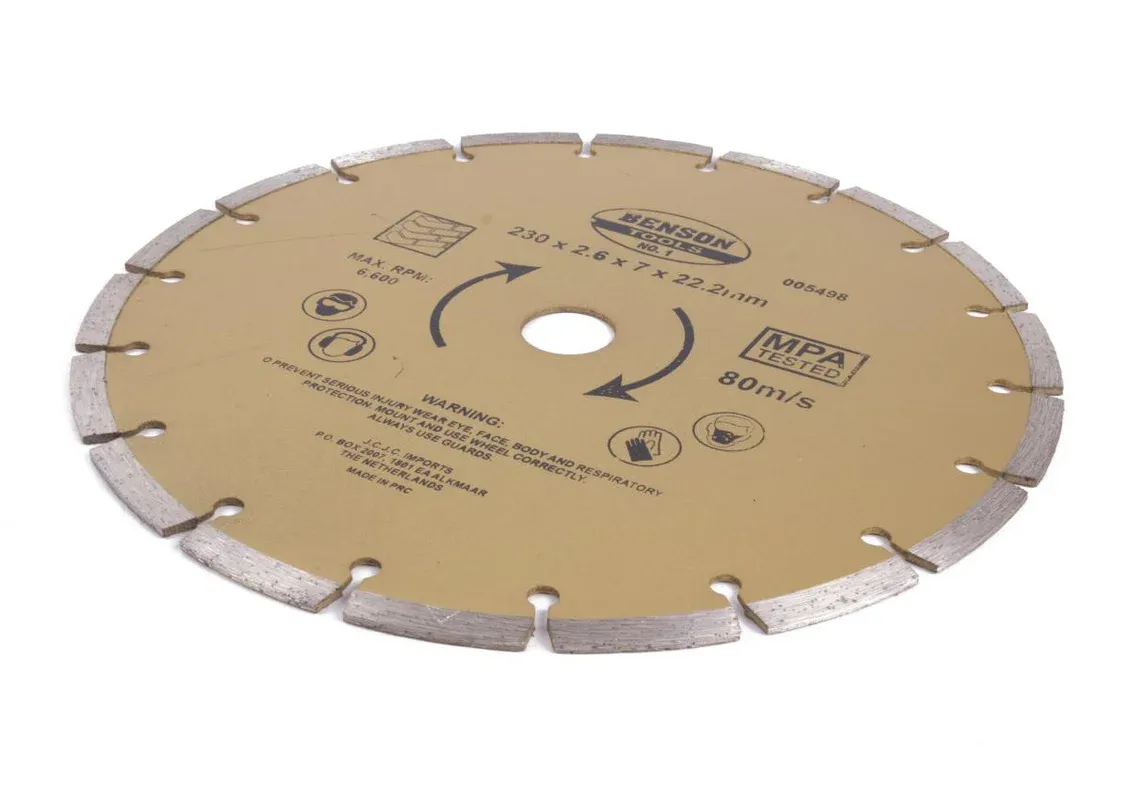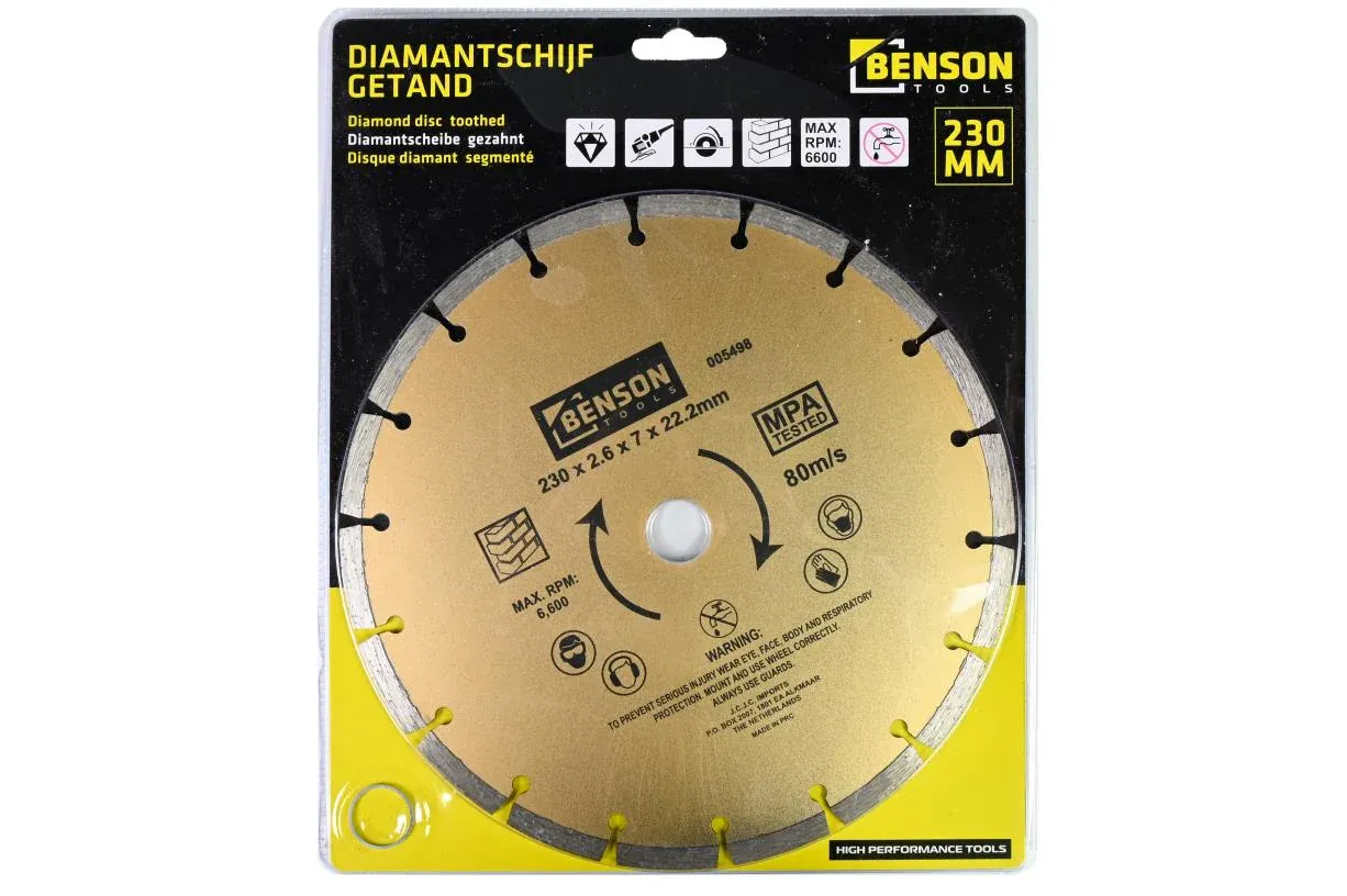 Verpakkingsinhoud: 1 x diamantschijf 230 mm getand.
