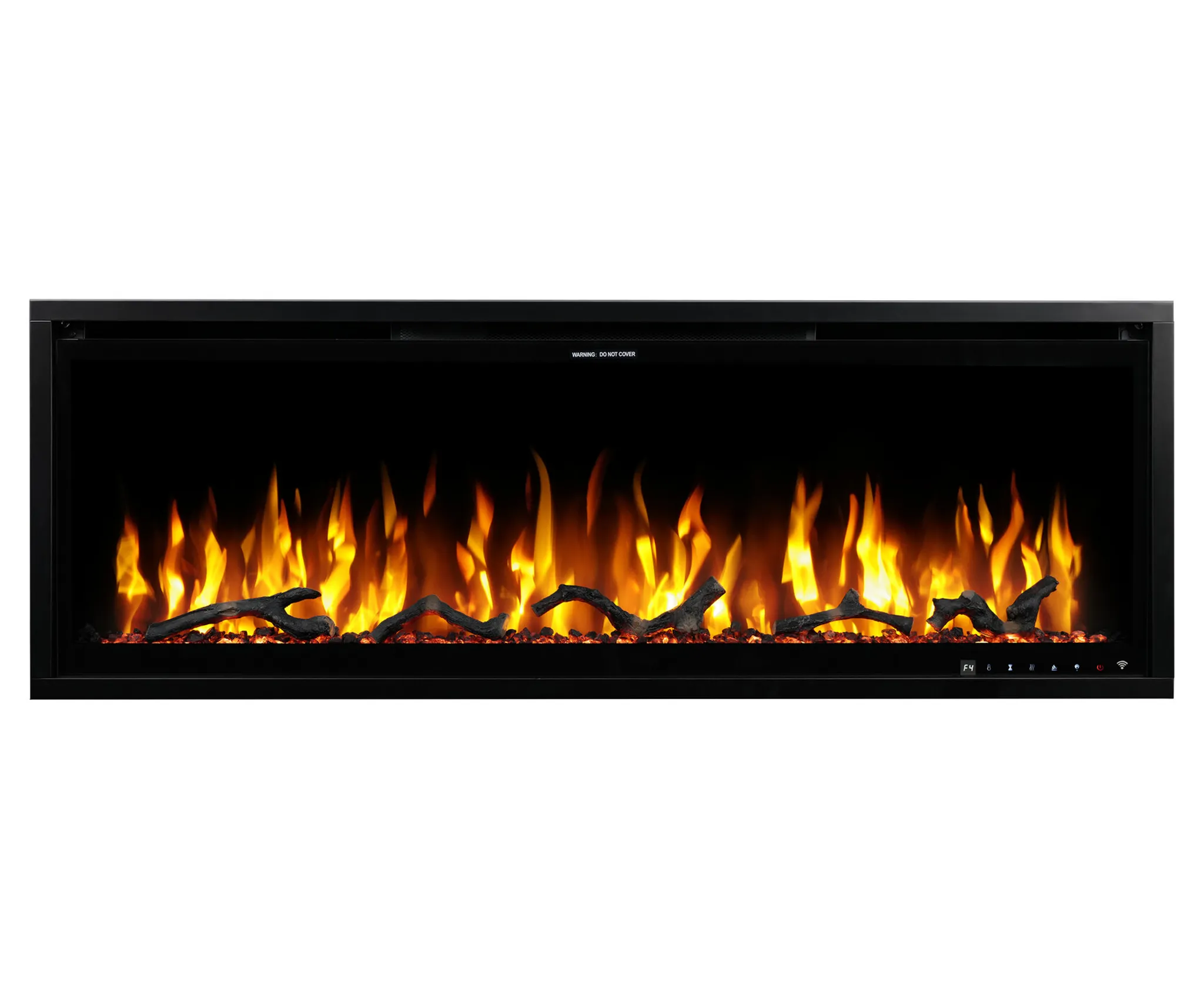 De FJORTA ODIN 40” elektrische sfeerhaard is een compacte en stijlvolle wandhaard met een breedte van 102 cm, ontworpen om sfeer en warmte te combineren in kleinere tot middelgrote ruimtes. Deze moderne haard is uitgerust met realistische LED-vlameffecten en uitgebreide instelmogelijkheden, waardoor je eenvoudig de gewenste ambiance creëert. Dankzij de geïntegreerde verwarmingsfunctie met twee standen en een nauwkeurig instelbare temperatuur biedt deze haard niet alleen visuele beleving, maar ook comfortabele bijverwarming. De bediening is flexibel via het touchpaneel op het glas, de meegeleverde afstandsbediening of de Tuya Smart App, wat zorgt voor maximaal gebruiksgemak in elke situatie.