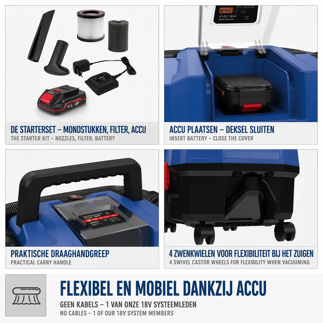 Güde Accu Nat- en Droogzuiger NTST 18-201-05 – 18V E³ incl. accu en lader
