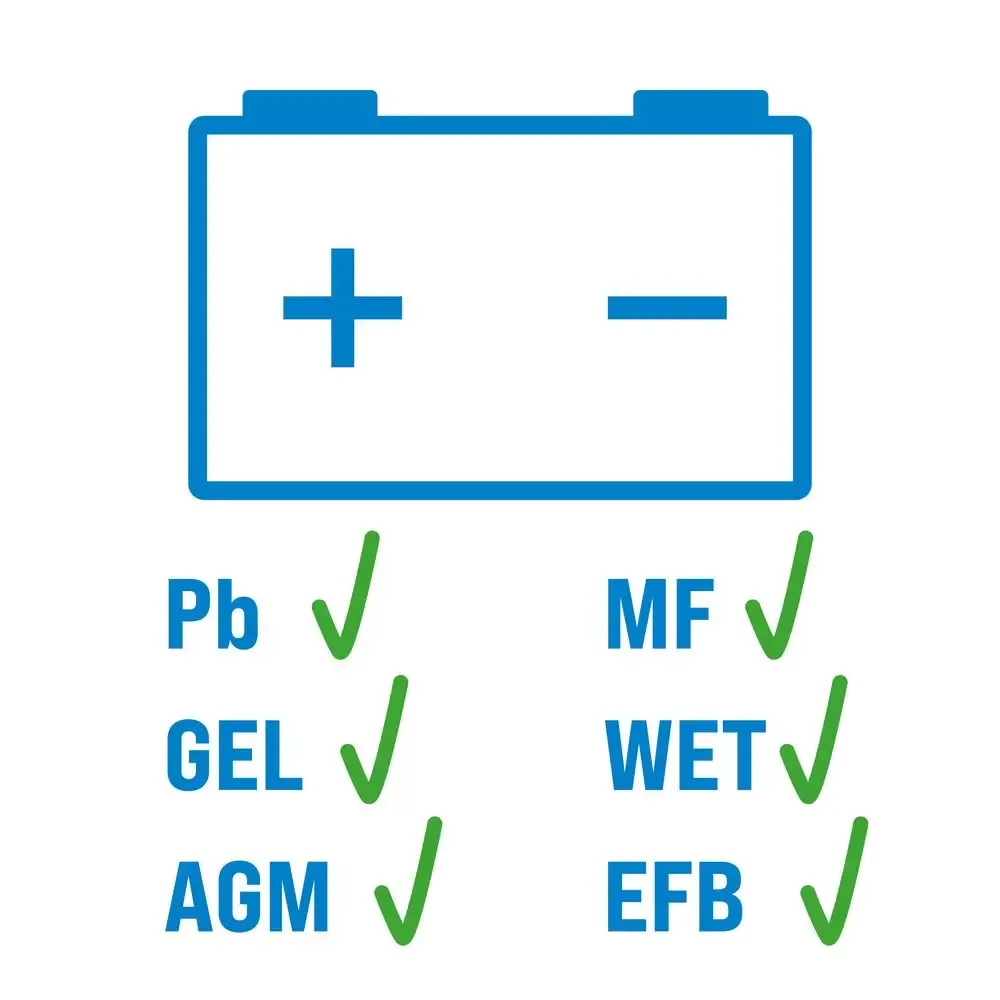 ✔ Ondersteunt meerdere accutypen: PB, GEL, AGM, WET, EFB en LiFePO4