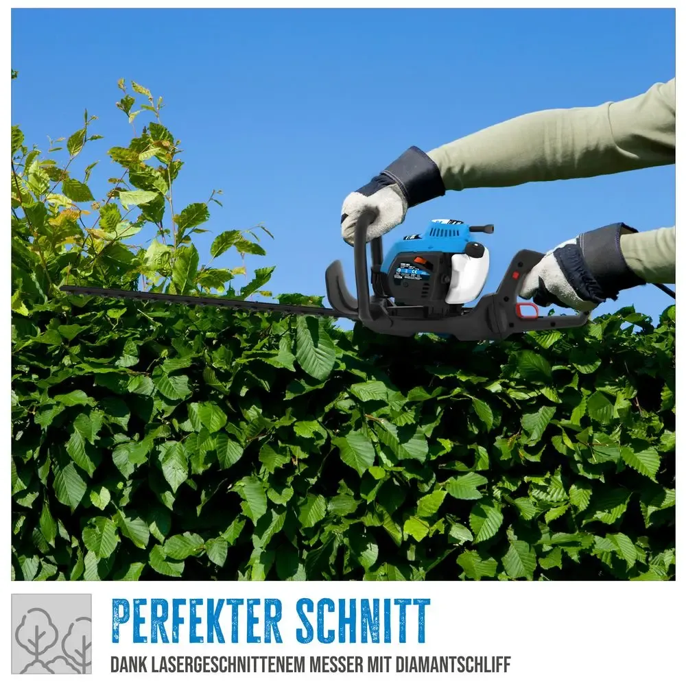 De heggenschaar wordt geleverd met een mengcontainer en bougiesleutel, zodat de machine direct gebruiksklaar gemaakt kan worden. De stevige constructie en het efficiënte snijsysteem maken deze benzine heggenschaar geschikt voor intensief tuinonderhoud.
