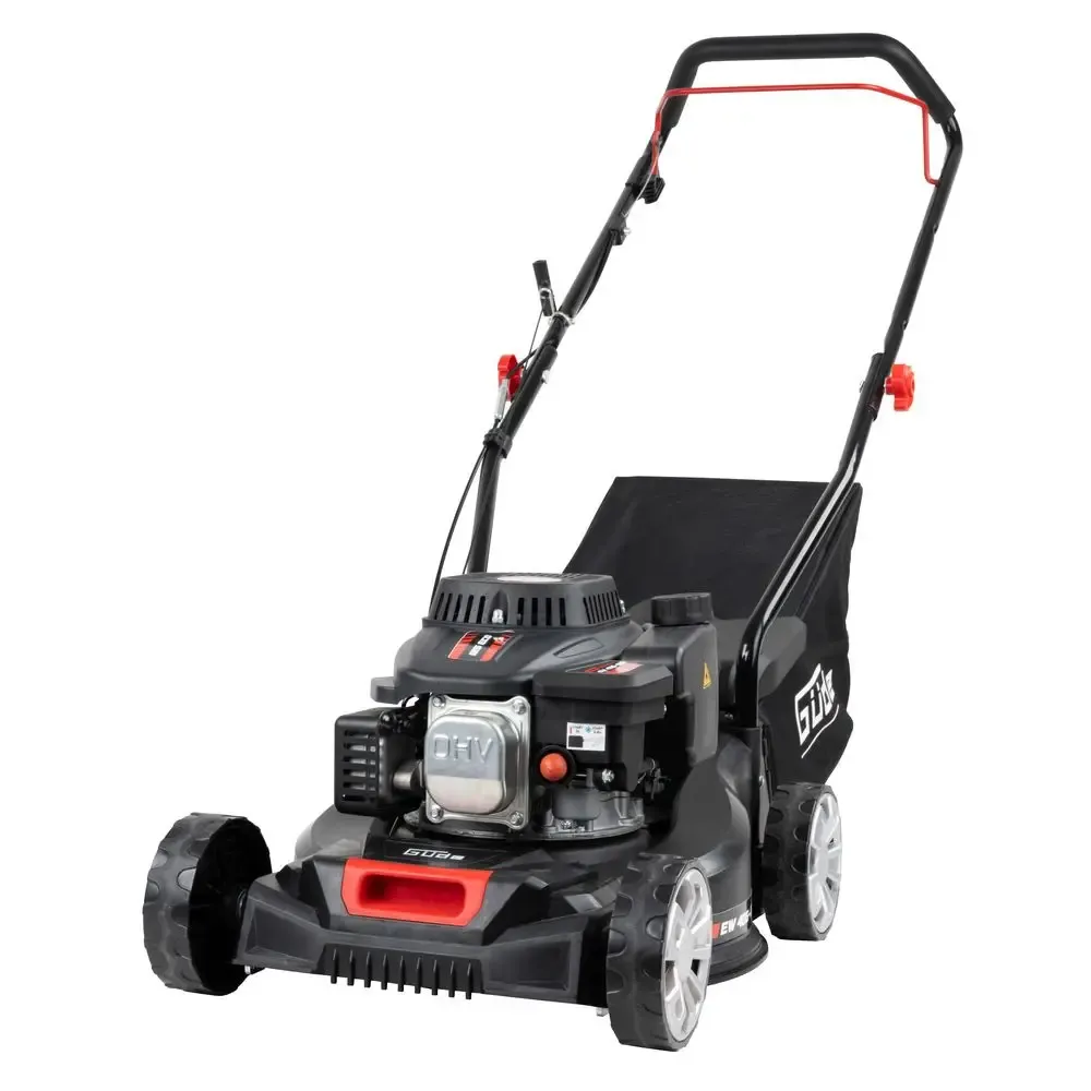 De Güde Eco Wheeler EW 406-125 is een compacte en krachtige benzinegrasmaaier voor gazons tot circa 900 m². Uitgerust met een 4-takt motor van 125 cm³ en een maaibreedte van 406 mm levert deze maaier betrouwbare prestaties, ook bij dichter gras. Dankzij de 3-voudige maaihoogteverstelling, kogelgelagerde wielen en softgrip handgreep werk je comfortabel en gecontroleerd. De ruime grasopvangbak van 45 liter maakt efficiënt maaien mogelijk met minder onderbrekingen.
