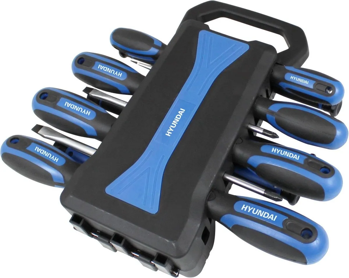 Verpakkingsinhoud: 44-delige Hyundai schroevendraaier- en bitsset in bewaar cassette.