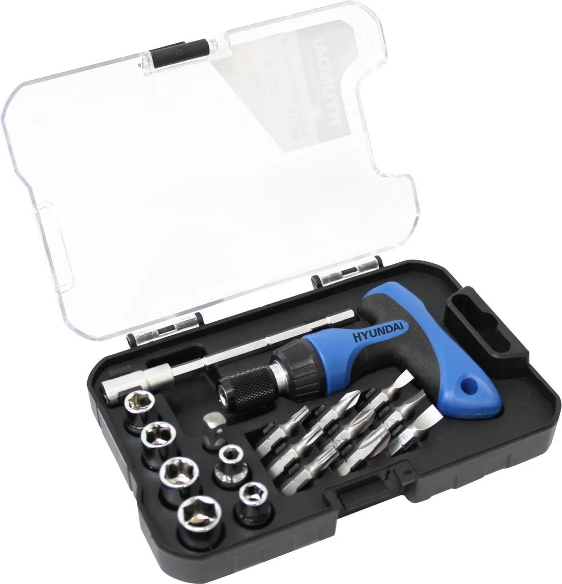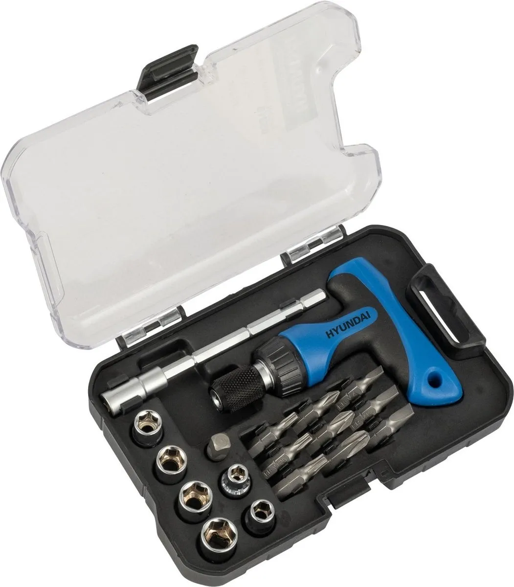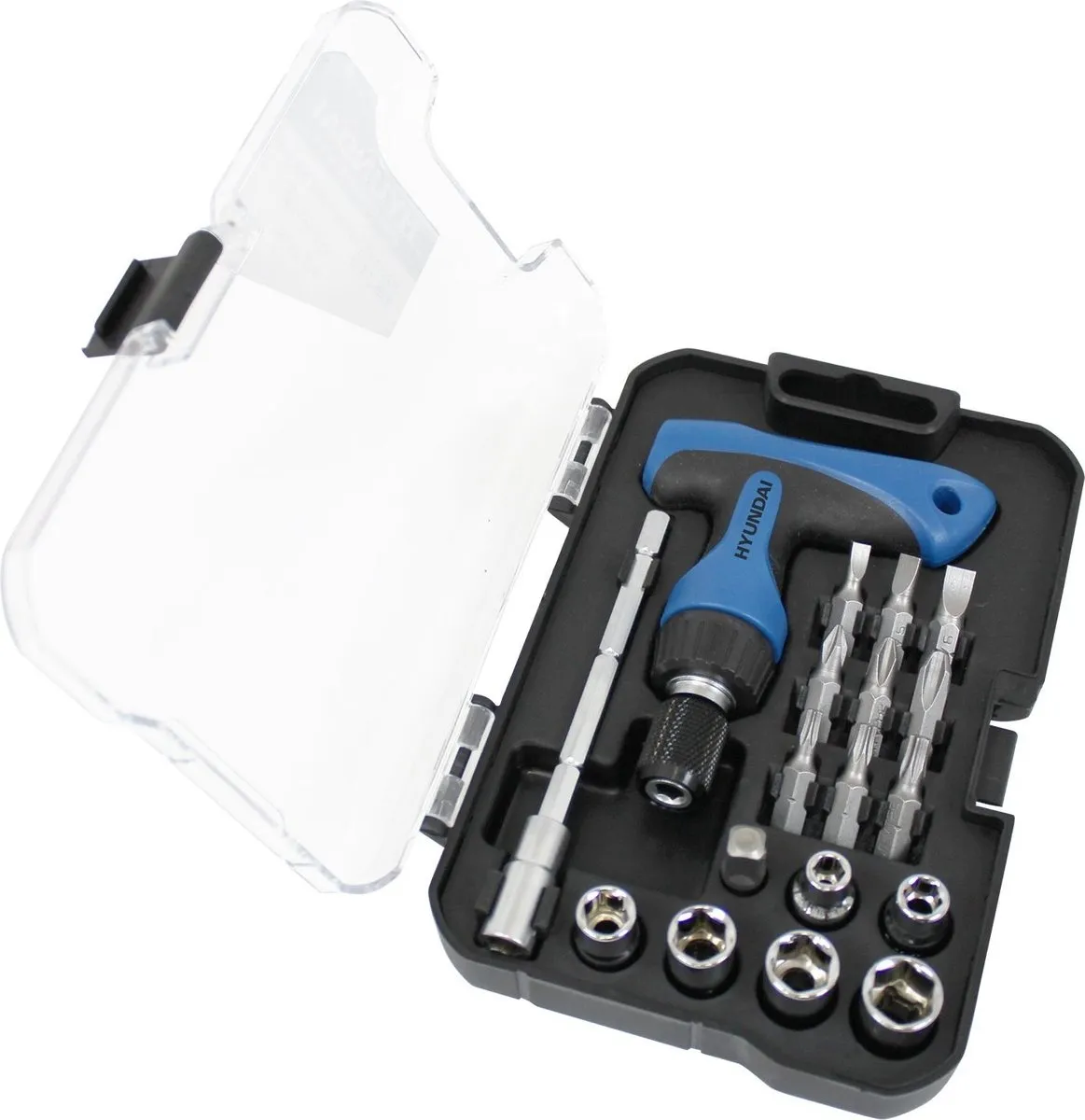De HYUNDAI dop- en bitsset 18-delig is een compacte en veelzijdige set voor montage-, onderhouds- en reparatiewerkzaamheden. Dankzij de T-greep ratelschroevendraaier werkt u met meer kracht en controle Lees meer
