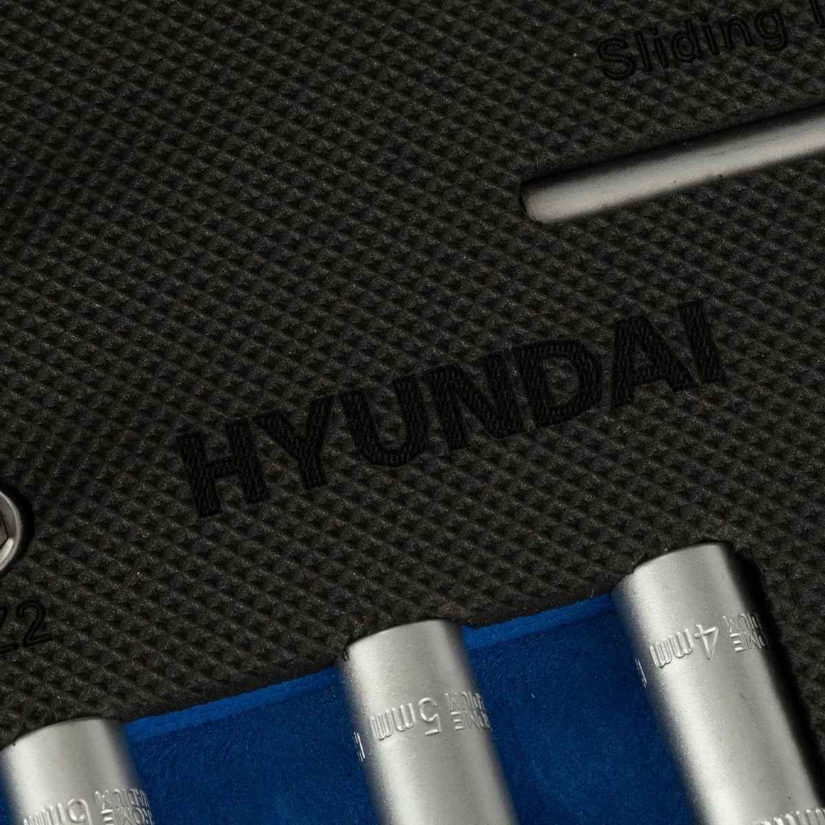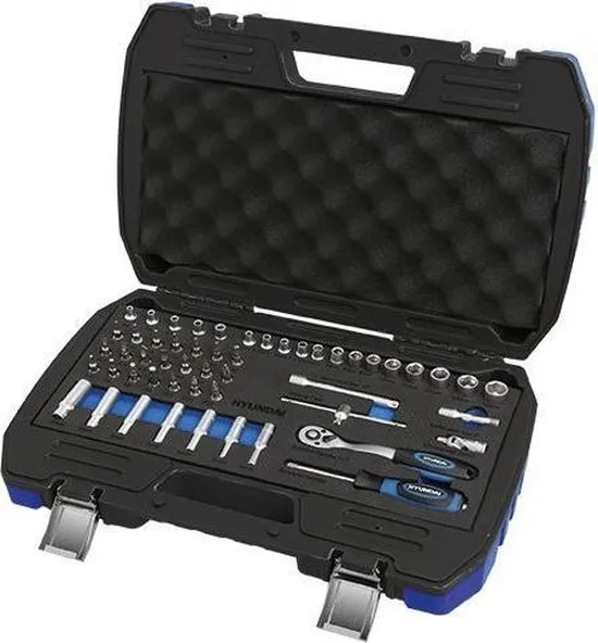 Hyundai doppen/bitsset 52-delig - chroom-vanadiumstaal - ergonomische handgreep - inclusief verlengstukken en adapter